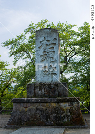 春の米沢城跡の招魂碑の風景