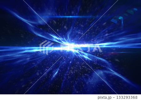 Pulsating blue energy beam is streaking across deep space in flat vector design, copy space