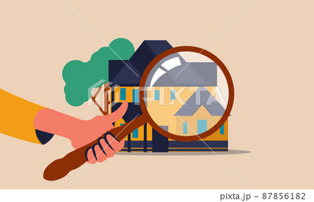 Inspect accommodation and house inspector with valuation. Home property and acquisition mortgage vector illustration concept. Magnifying glass with maintenance rental search. Services real estate