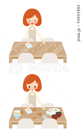 食後の汚れたテーブルと綺麗なテーブル