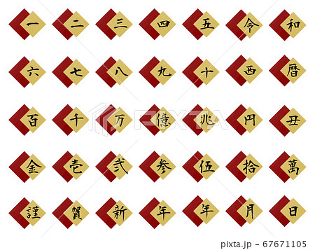 漢数字と毛筆風金色の輪