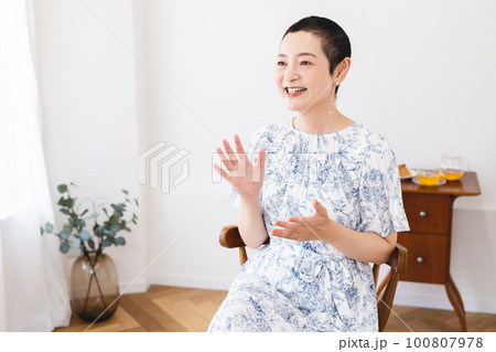 笑顔で話すミドル女性