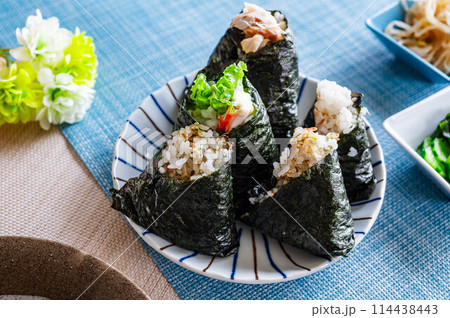 菜めしとピーナッツご飯のおにぎり