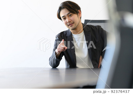 ポーズ 指差す カメラ目線 挑発 挑戦 男性 ビジネスマン 白バック