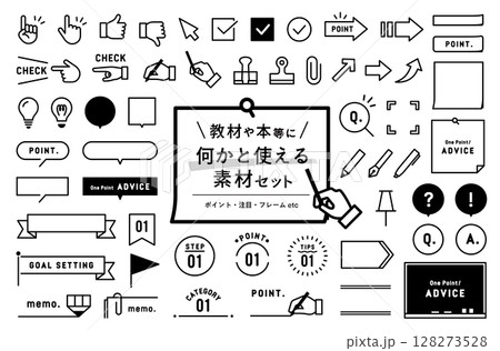 教材・本等に使えるアイコン・フレームの素材セット ポイント 注目 手 勉強 学習 あしらい 飾り 枠