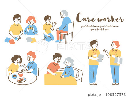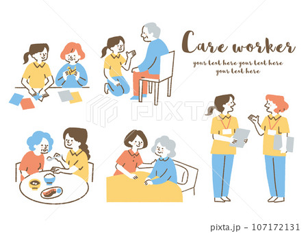 高齢者施設で働く女性たちのセット_色