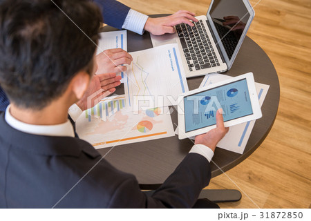 ビジネス ミーティング コアワーキング 打ち合わせ タブレット コミット 男性社員 パソコン 資料