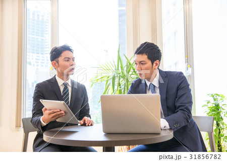 ビジネス ミーティング コアワーキング 打ち合わせ 会議 二人 男性 コミット イケメン
