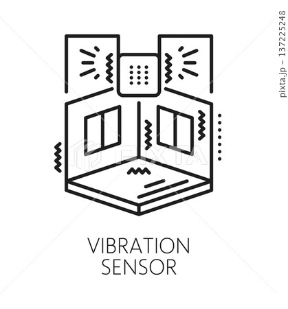 Vibration sensor home security equipment line icon or symbol. Home alarm device vector symbol, property protection equipment sign. House safety technology pictogram with vibration sensor and room