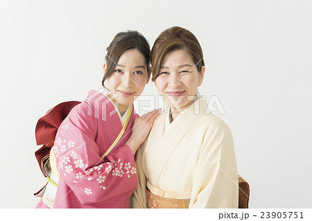 着物を着た女の子2人 お正月七五三イメージ