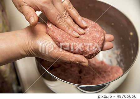 挽き肉をこねる