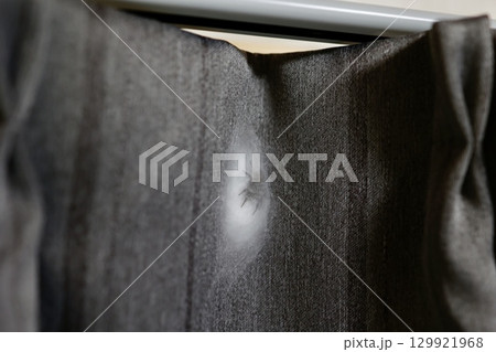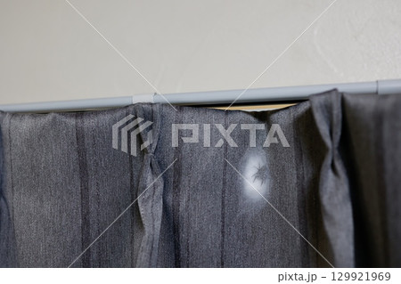 カーテンに袋状の巣を作るハエトリグモの写真