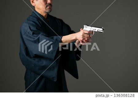 拳銃を持つミドル男性