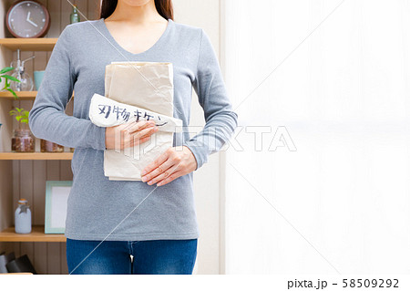 古本をまとめる女性 断捨離 コピースペース 4:3