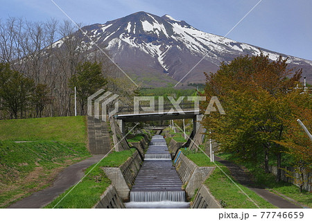青森県弘前市 岩木山総合公園の川と岩木山