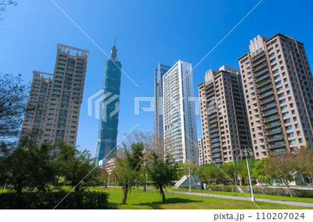 台湾 台北市 象山公園から見える台北101と高層マンション群
