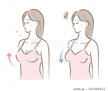 ハリのあるバストと垂れたバストの女性のイラスト ビフォアアフター