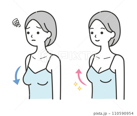 ハリのあるバストと垂れたバスト 女性のイラスト ビフォアアフター シンプルタッチ
