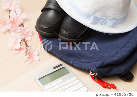 お金のイメージ 子どもの教育費 電卓とミニチュアの学用品