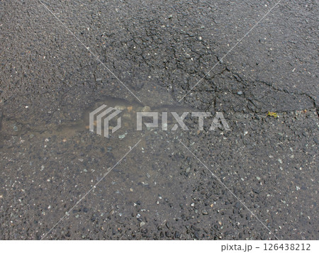 アスファルト舗装路面の陥没部分の水たまり