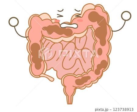 便秘で苦しむ大腸のキャラクターイラスト