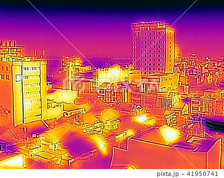 猛暑 酷暑 熱中指数 ヒートアイランド 太陽光で過熱する都市 サーモグラフィー