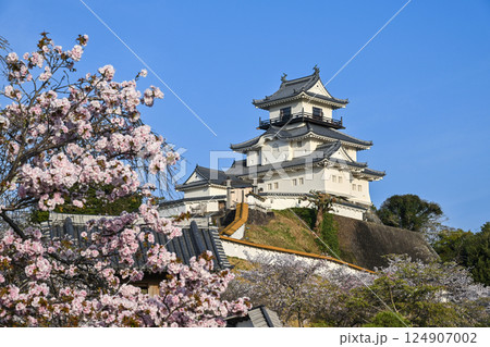 春の青空に映える満開の桜と掛川城天守閣