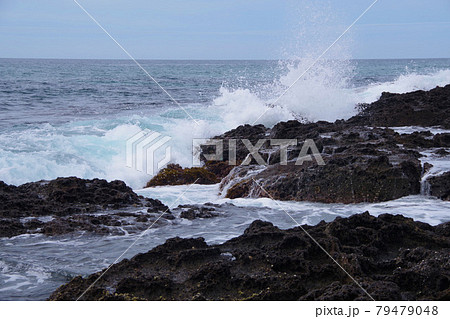 日本海の荒波 凝灰岩に弾ける波 丹後半島