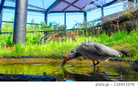池にいるトキ(左向き)