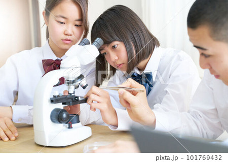 教科書を見ながら考える制服姿の学生・女子生徒・中学生