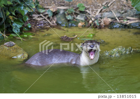 Adorable baby hippopotamus closeup in wildlife habitat with cute animal portrait