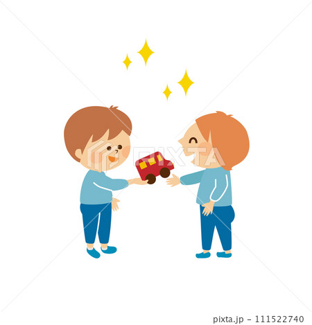 おもちゃの貸し借りをする子供達 かわいいイラスト素材