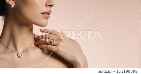 Elegant jewelry close-up showcasing diamond necklaces and rings in luxury fashion style