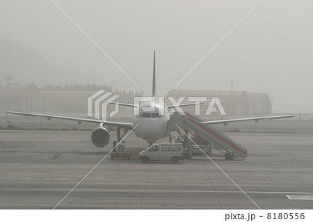 Airliner Airplane Grounded at Airport in Fog