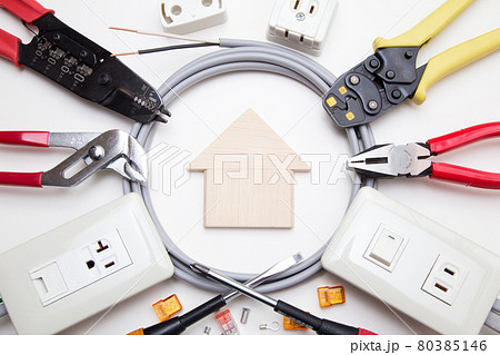 電気工事イメージ 電気工事用工具とケーブル