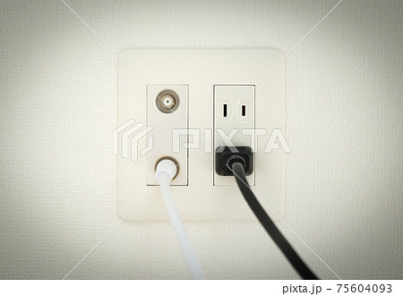 アンテナ端子とコンセント 電源ケーブル 壁面のマルチコンセント テレビのアンテナ端子とコンセントの穴