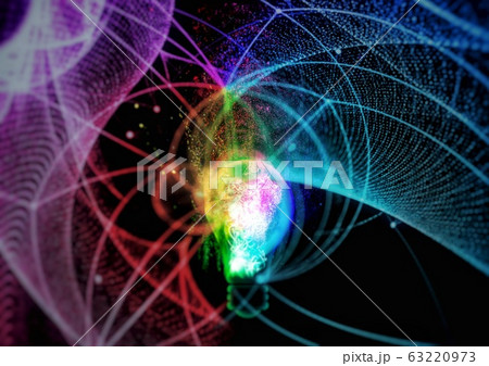 光輝く抽象的な脳から飛び散る光のアルファベット
