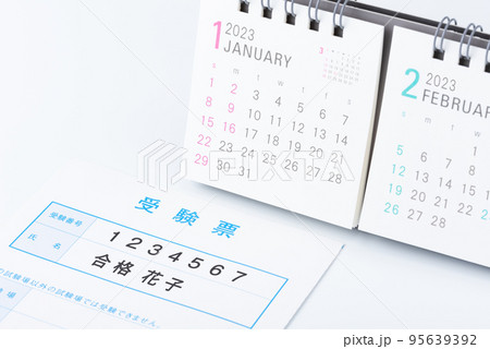 受験票とカレンダー(入試・受験・試験のイメージ)2023年