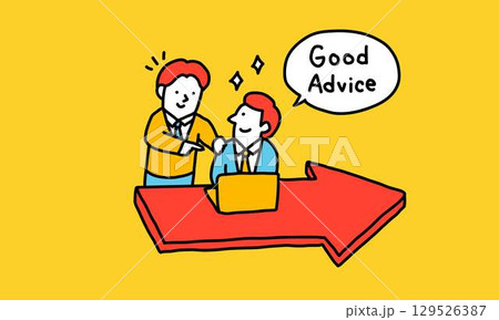 仕事している男性に相談してアドバイスを求めるビジネスマンのイラスト