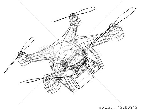 Abstract line and point drone. Drone flying with action video camera on dark blue. Polygonal low poly background with connecting dots and lines