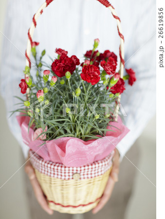 カーネーションを持つ男性