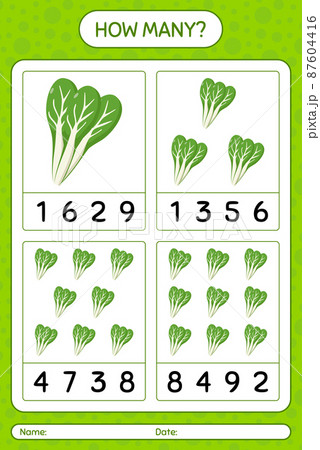 How many counting game with komatsuna. worksheet for preschool kids, kids activity sheet, printable worksheet