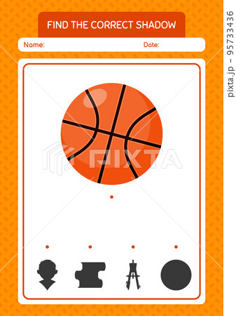 Find the correct shadows game with basketball. worksheet for preschool kids, kids activity sheet