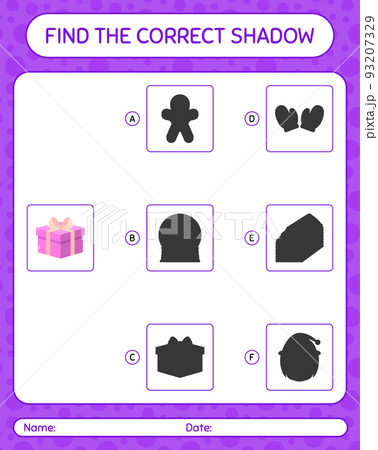 Find the correct shadows game with christmas icon. worksheet for preschool kids, kids activity sheet