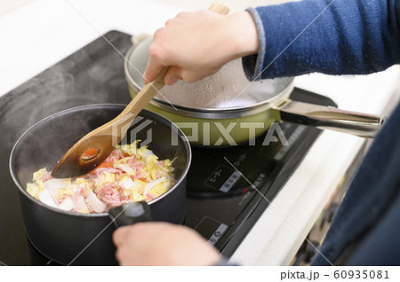 家庭での調理シーン(混ぜる)