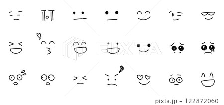 手書きの表情・感情表現イラストセット 白黒 Handwritten facial