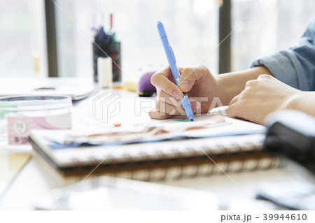 タブレットとペンを持つ女性の手元