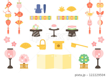 ひな飾りの道具のイラストセット ひな人形 ひな祭り