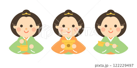 提子を持っている三人官女のイラスト ひな人形 ひな祭り
