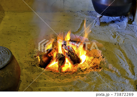 囲炉裏の暖かい炎